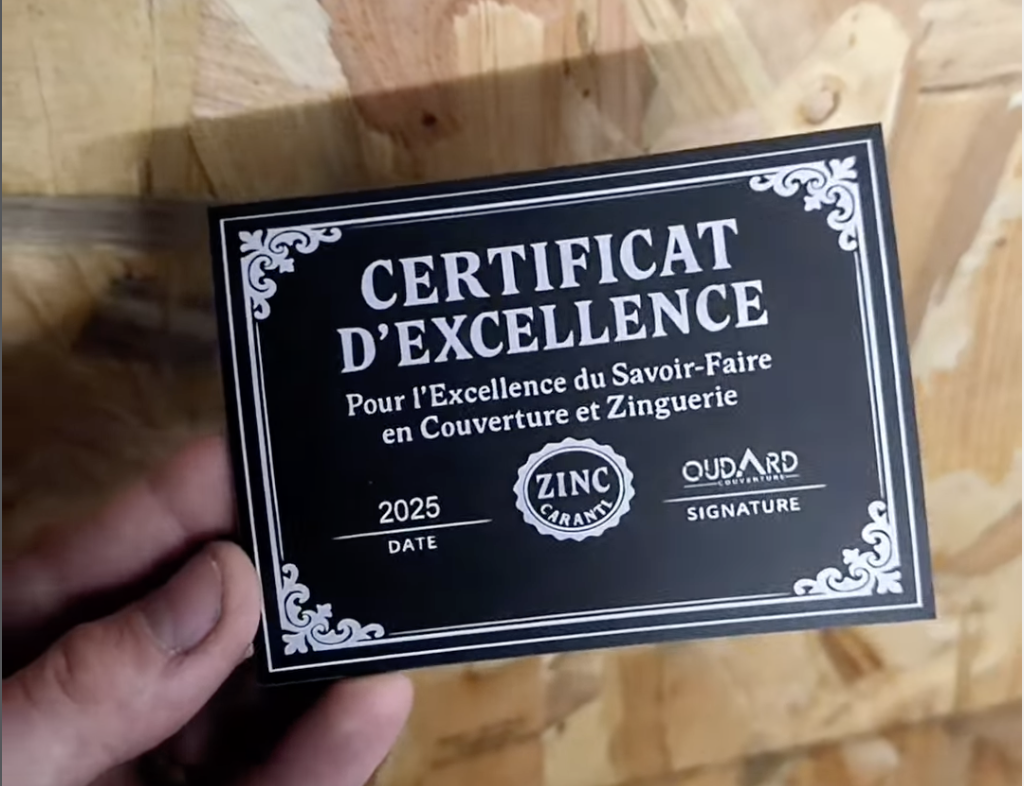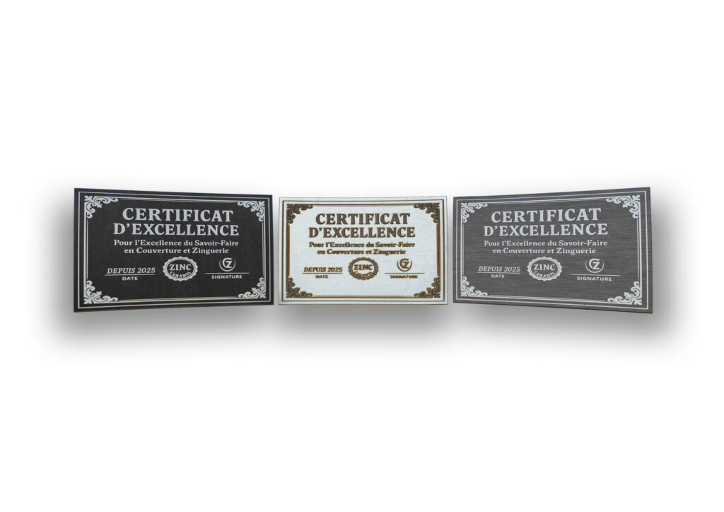Parce qu’un zingueur sait ce qu’une gravure doit endurer. Exposition, intempéries, pose, intégration à l’ouvrage : chaque détail est maîtrisé. La gravure n’est pas seulement esthétique, elle est pensée pour le terrain, le métier et la durée. Résultat : une signature crédible, professionnelle et parfaitement intégrée, réalisée par un artisan qui connaît vos contraintes et valorise réellement votre savoir-faire.